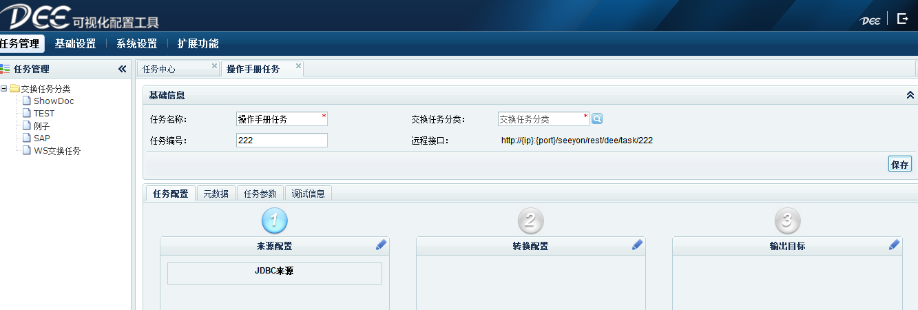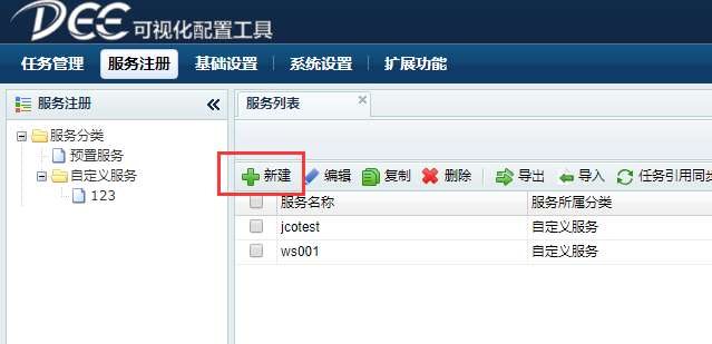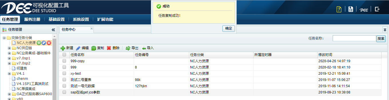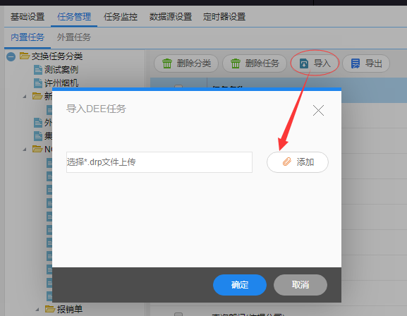 在dee配置工具端配置好的任务,可以通过导入到服务端提供给外部应用调用