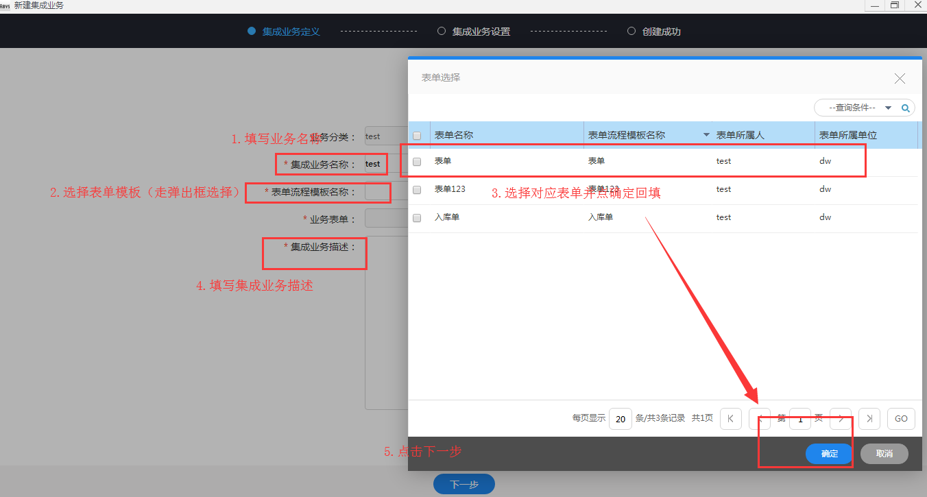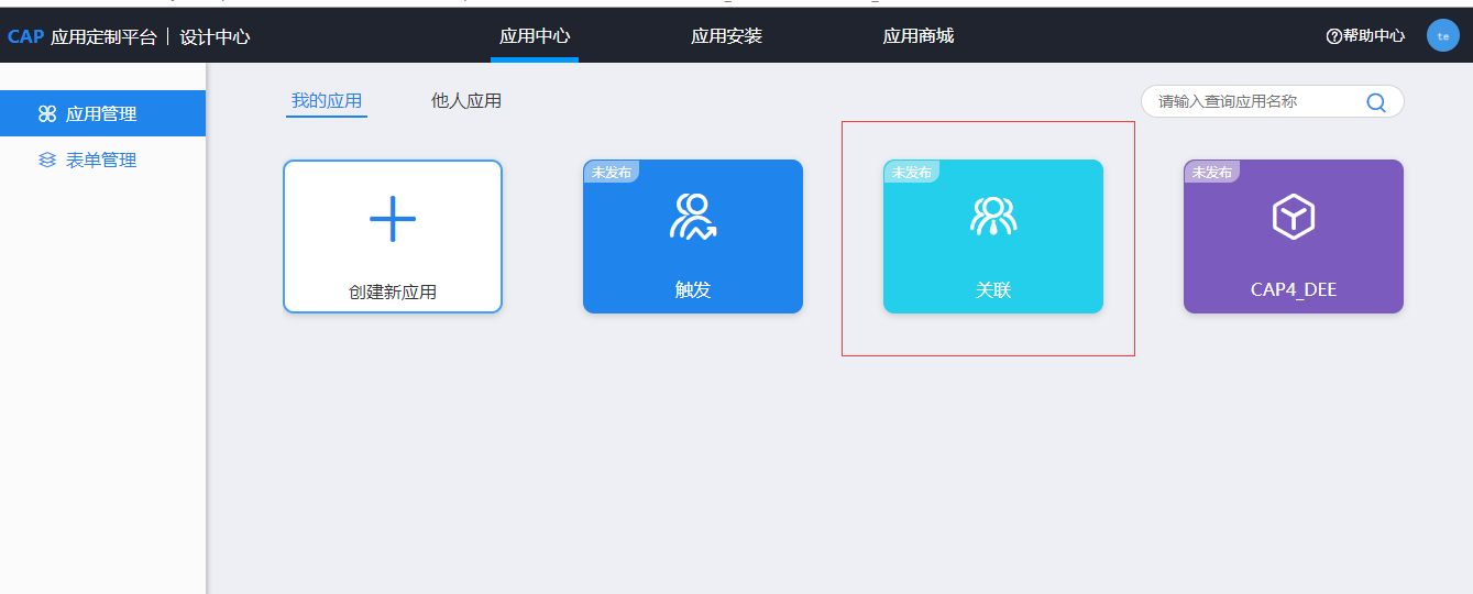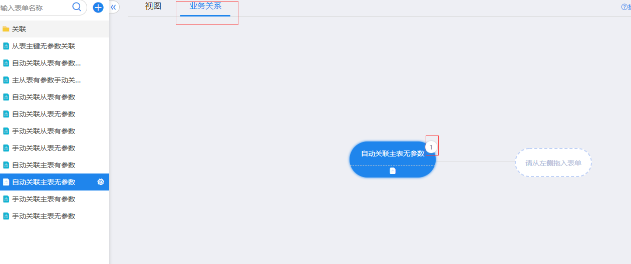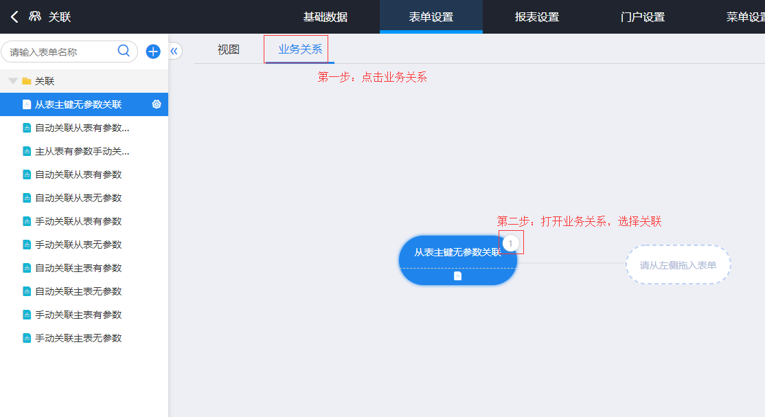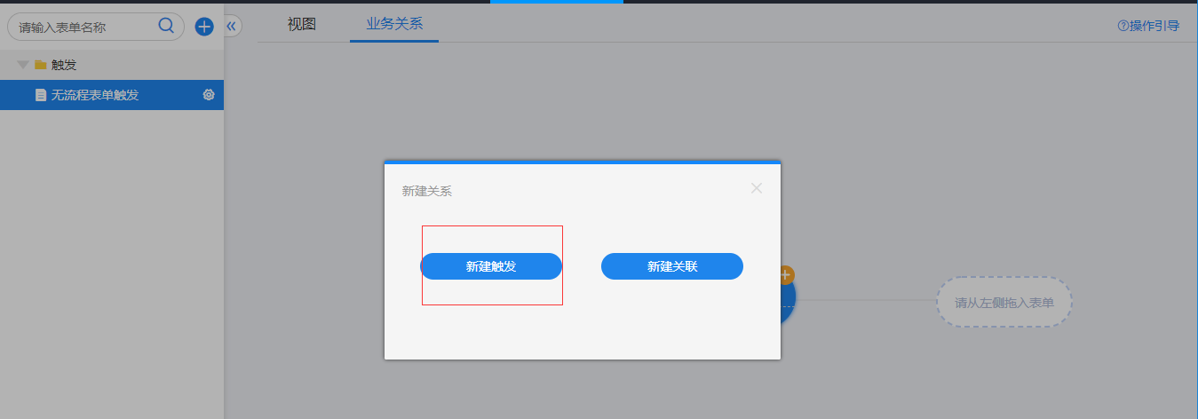 3.选择表单,点击业务关系,选择新建一个关联业务