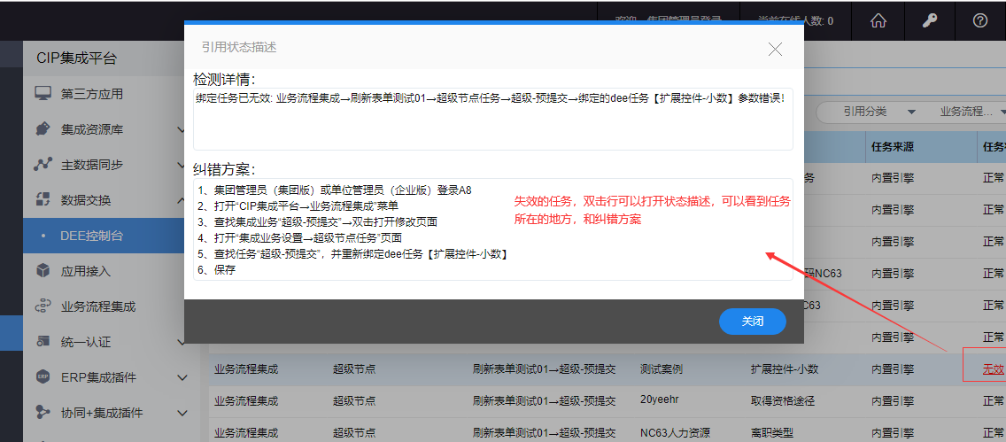 注意点2:有些客户执行了dee查询的任务后,前端表单弹出的列表中空白无数据: