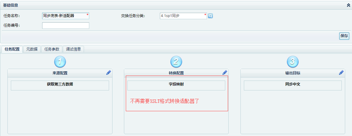 - **操作说明:**交换任务的来源配置,可以在其中增加脚本,或自定义Adapter配置,创建完成的适配器可以通过拖动排序的方式改变其原有的执行顺序。