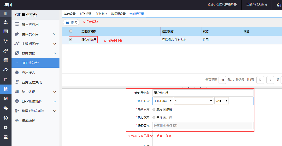 - 点击编辑按钮,弹出定时器设置对话框,修改定时器配置。