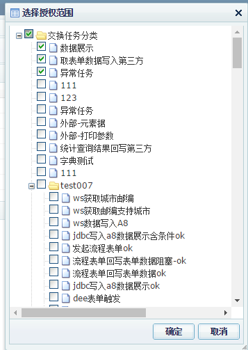 - 点击授权范围,选择该账户需要访问的任务,如图