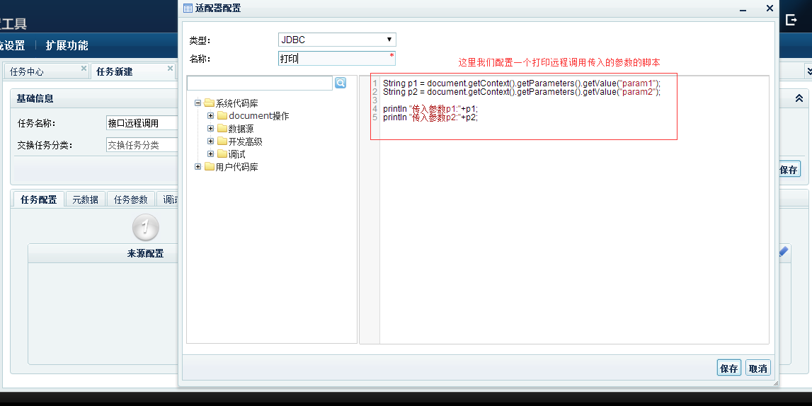 注意点:脚本适配器中左侧的"系统代码库"请开发人员先好好研究一下,会有很多便利的操作