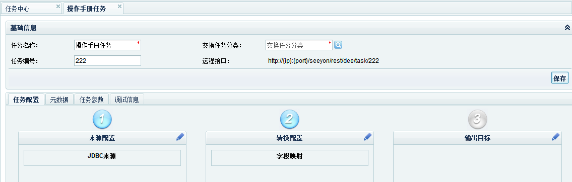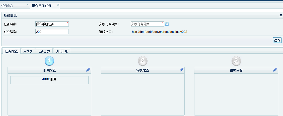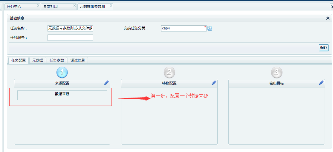 **第一步:**进入任务配置界面如图1,在来源配置框中,点击