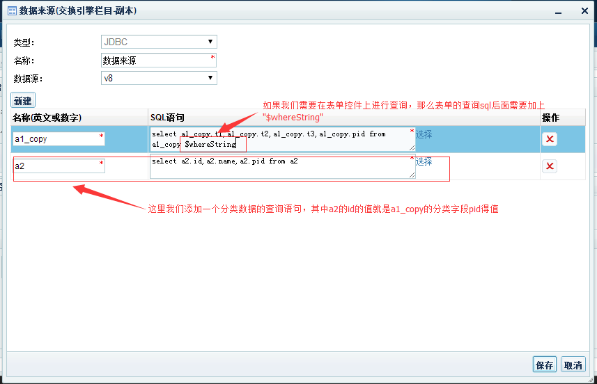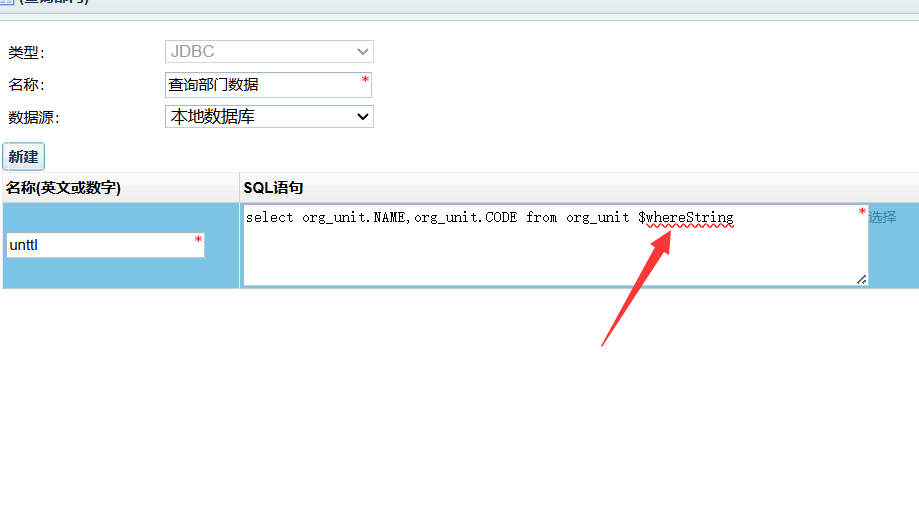 注意点1:很多客户有时导入到OA里面使用时发现根据字段筛选数据时不生效,那么是因为对应的sql语句末尾没加上$whereString导致的,$whereString是在JDBC适配器中起到筛选作用,支持筛选的要求如下,客户现场自行修改即可: