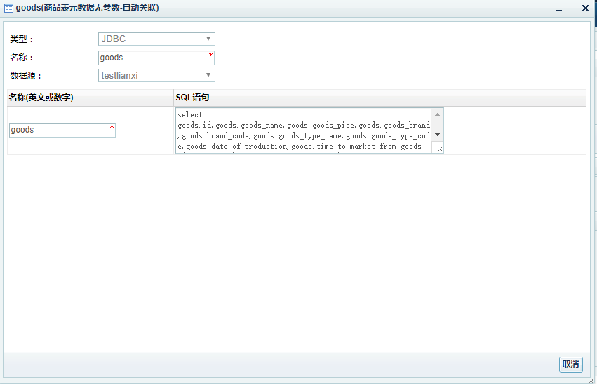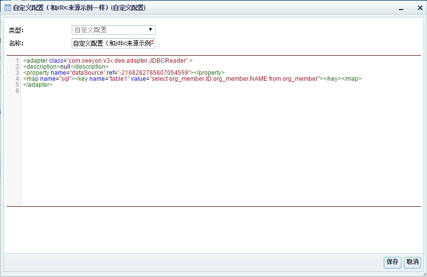 **第五步:**点击【保存】,将成功创建一条JDBC来源,并关闭当前页面如图6;