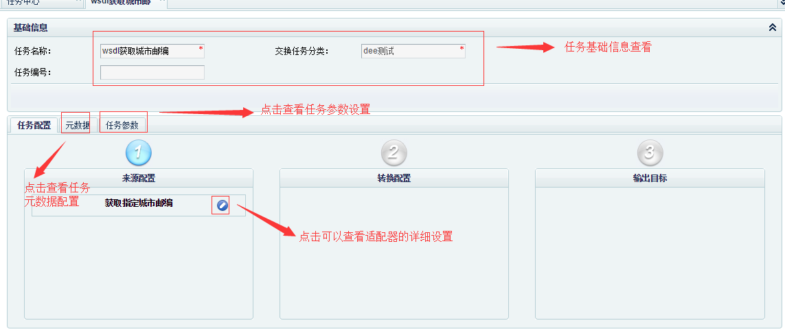 点击【任务管理】,选择任务分类,在任务中心列表,双击任务,可以浏览任务的详细配置