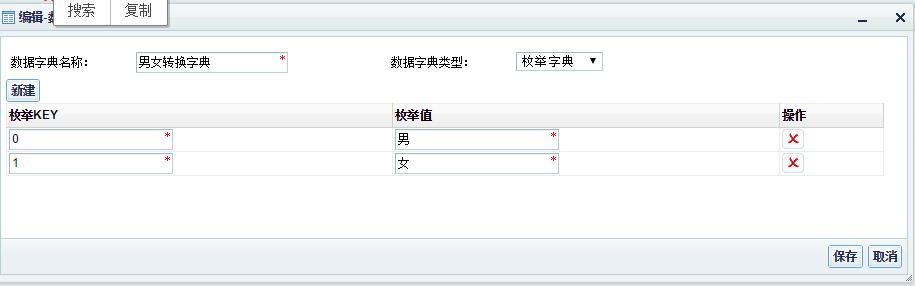2.在字典管理页签中,点击编辑按钮,将弹出数据字典配置界面,修改字典配置