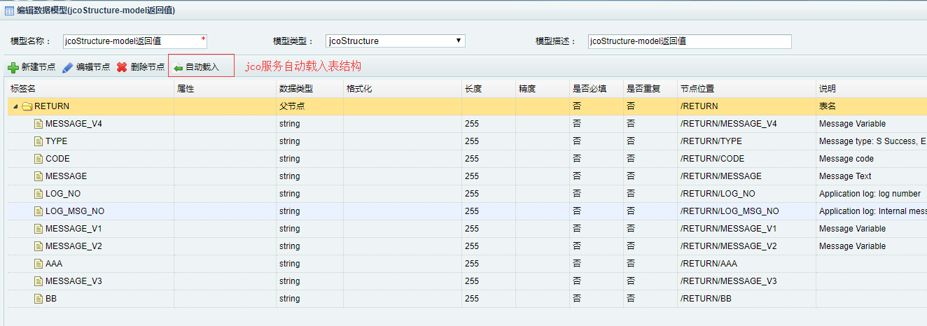 支持String、JCOStructure、JCOTable三种类型的返回参数。