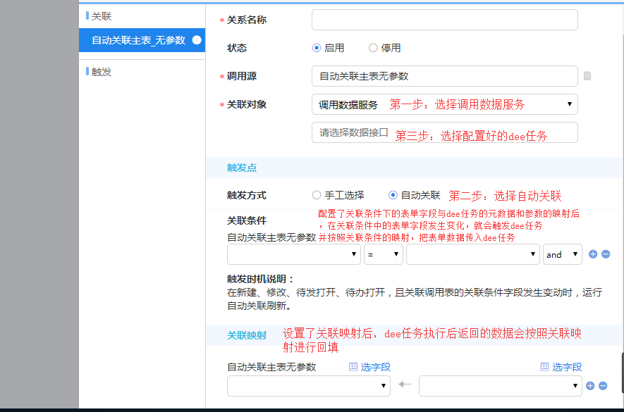 cap4表单的触发设置条件满足时,调用dee与第三方进行数据交换