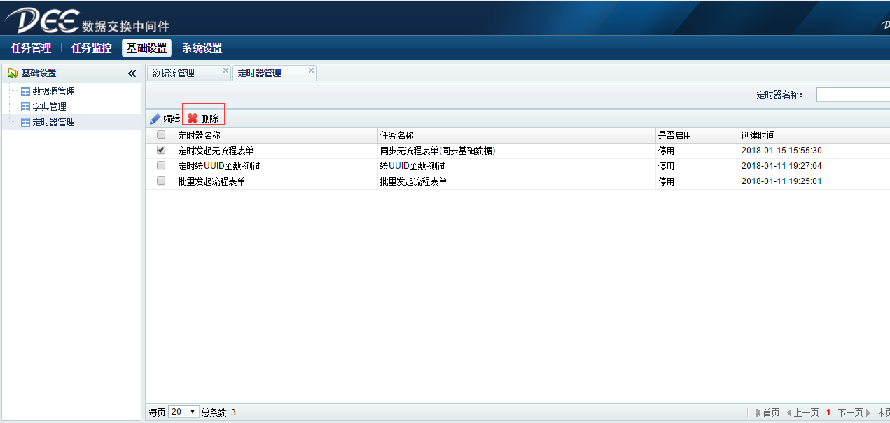 3.勾选一条记录,点击【删除】可以删除被选择的定时器。