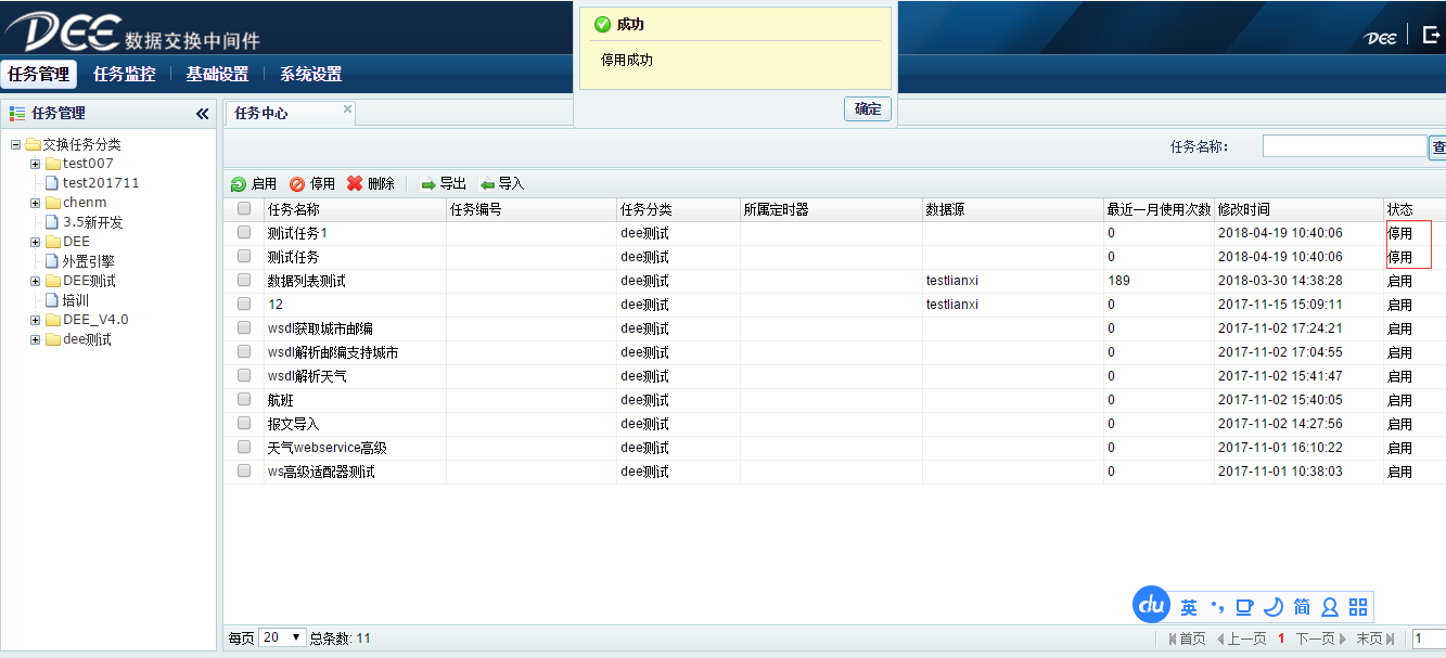 - **操作说明:**新增、修改及删除交换任务分类