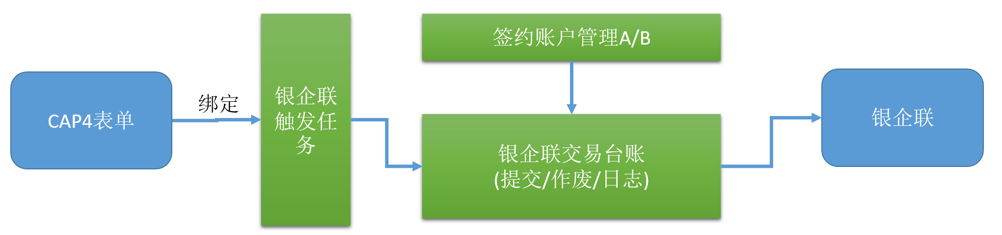 Cap4业务表单银联交易触发绑定:扩展cap4业务关系触发目标"银企联单笔交易预下单支付",支持业务付款单据直接触发推送到交易台账。