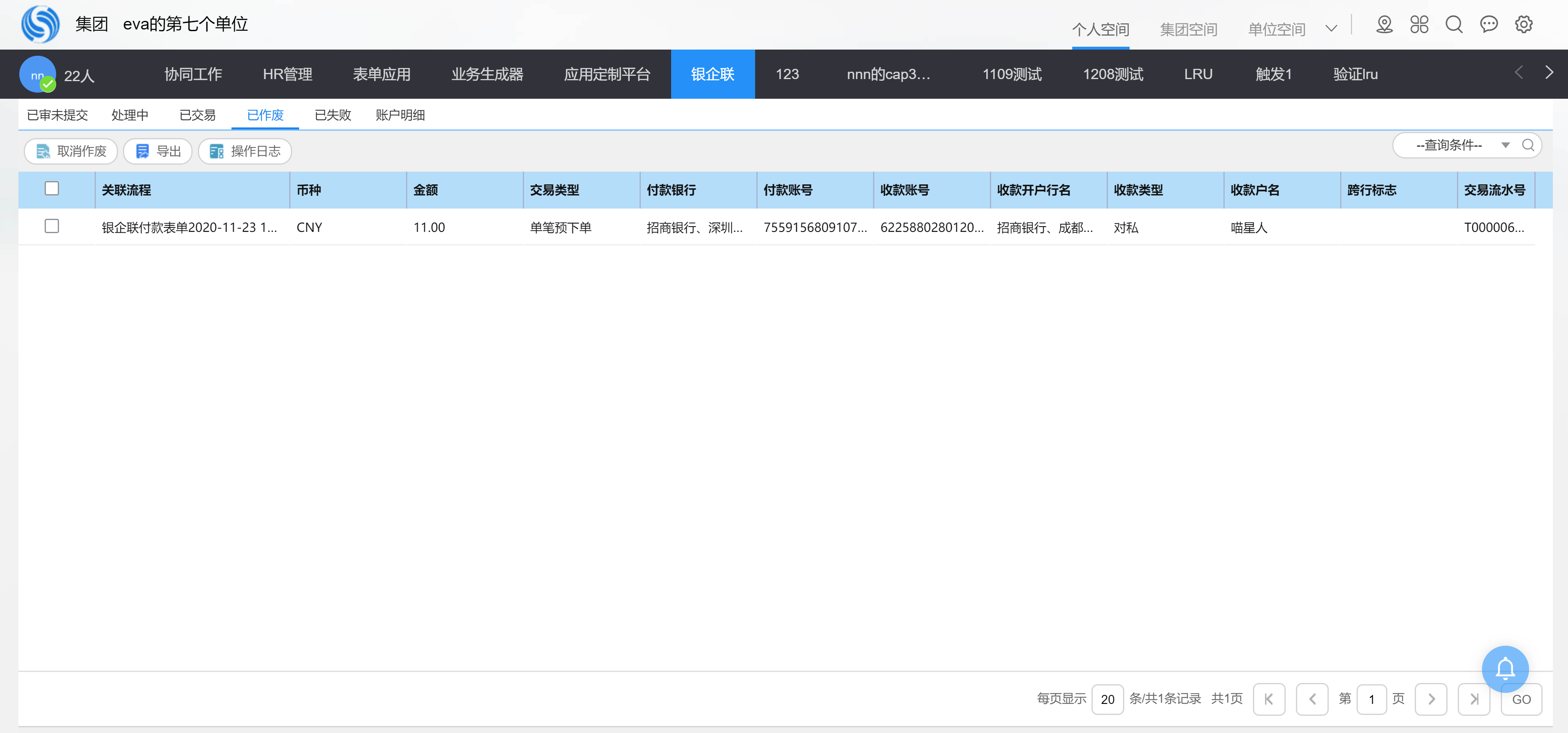 允许银企联交易员作废异常交易数据,也允许根据需要取消作废