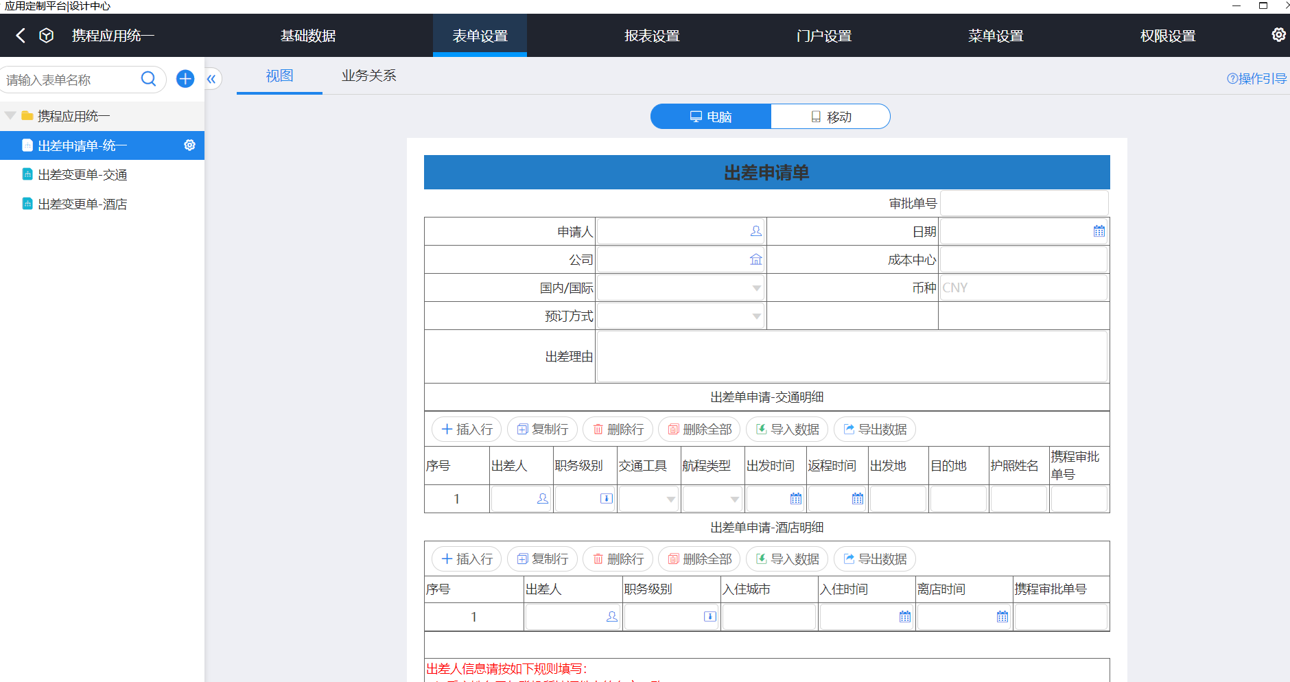 携程插件打通OA中用户出差流程和携程预订,并将携程数据反馈给OA;客户可自定义携程订票规则及订票所需相关信息,完善和执行差旅政策,全面控制差旅成本。