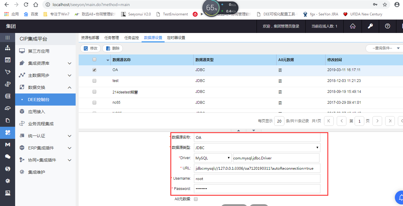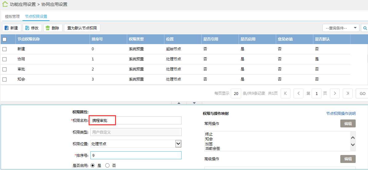 在集团管理员进行公司账号配置后,系统管理员登录协同,移动管理-移动接入设置页面可见2条自动增加的记录,点击修改按钮进行授权,如下图所示:
