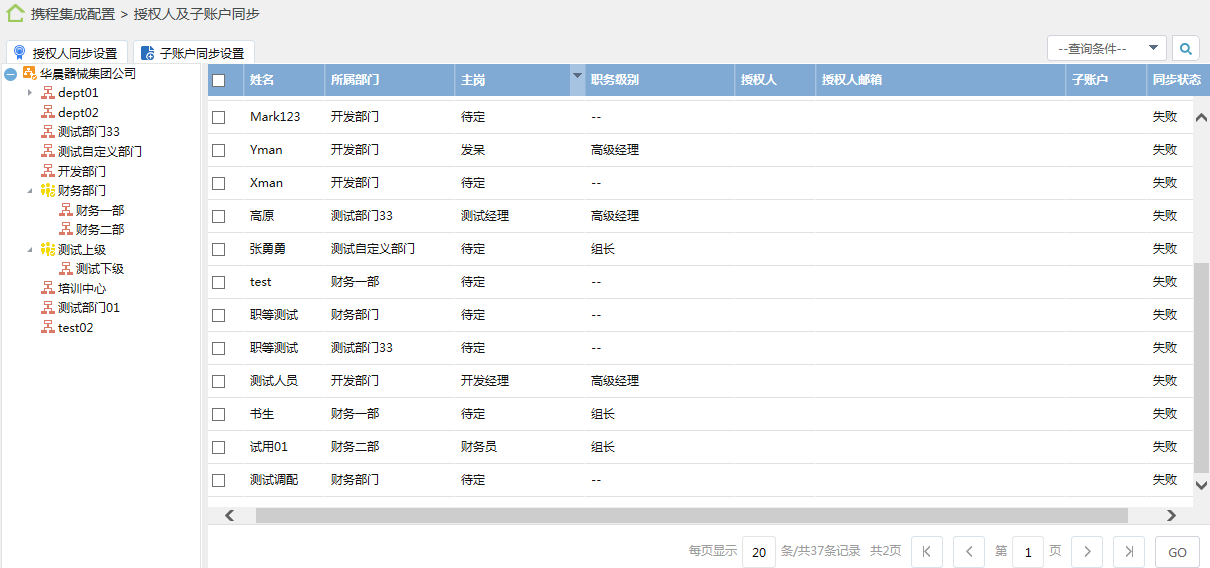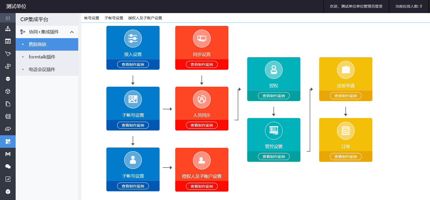 单位管理员登陆,需要进行授权人及子账户同步的集成配置,菜单如下图所示: