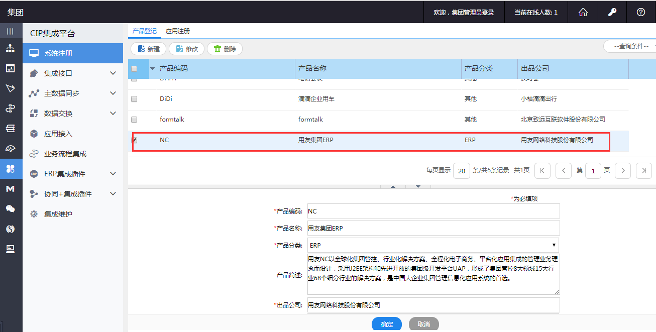 第一步:CIP集成平台上进行外部系统登记与注册;