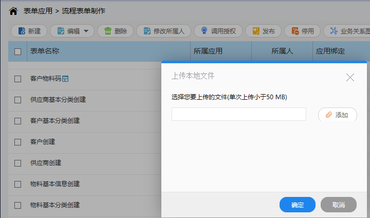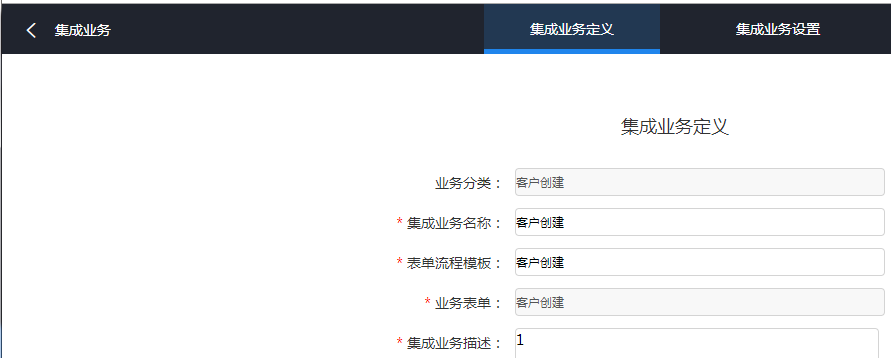 填写集成业务名称、选择表单流程模板(注意此模板只能选择,流程表单中创建的流程模板)、集成业务描述;