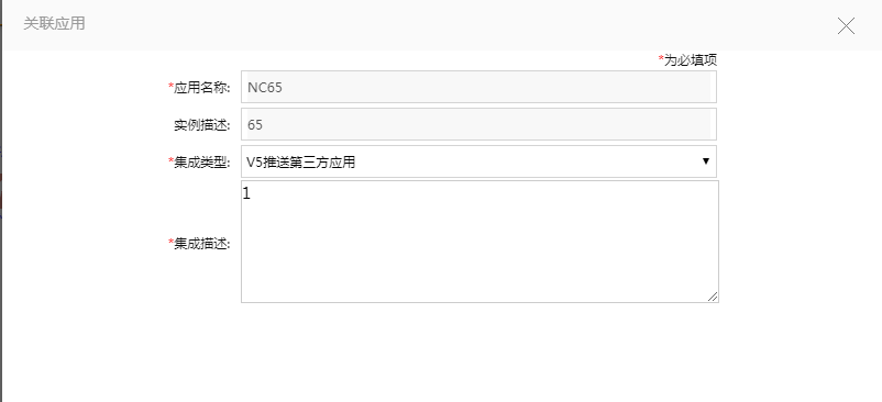 关联应用下拉选择,选择NC65,这里的nc65为应用注册中的nc65