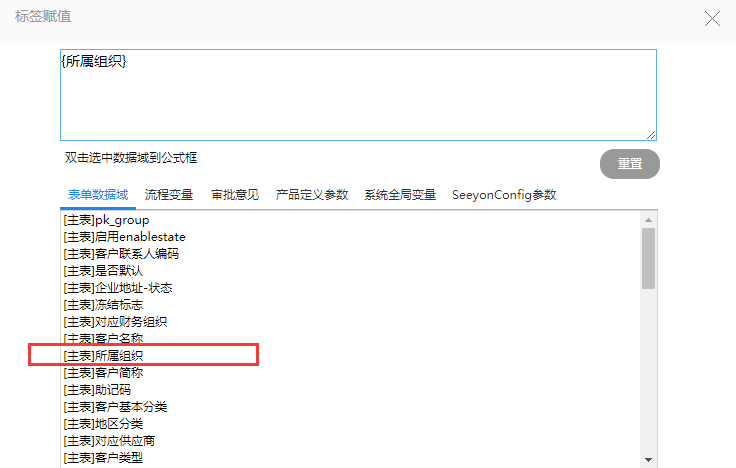 选择infopath制作表单定义的表单项-所属组织与标签名为pk-org进行映射,依次对每个标签都进行绑定映射,完成后保存;