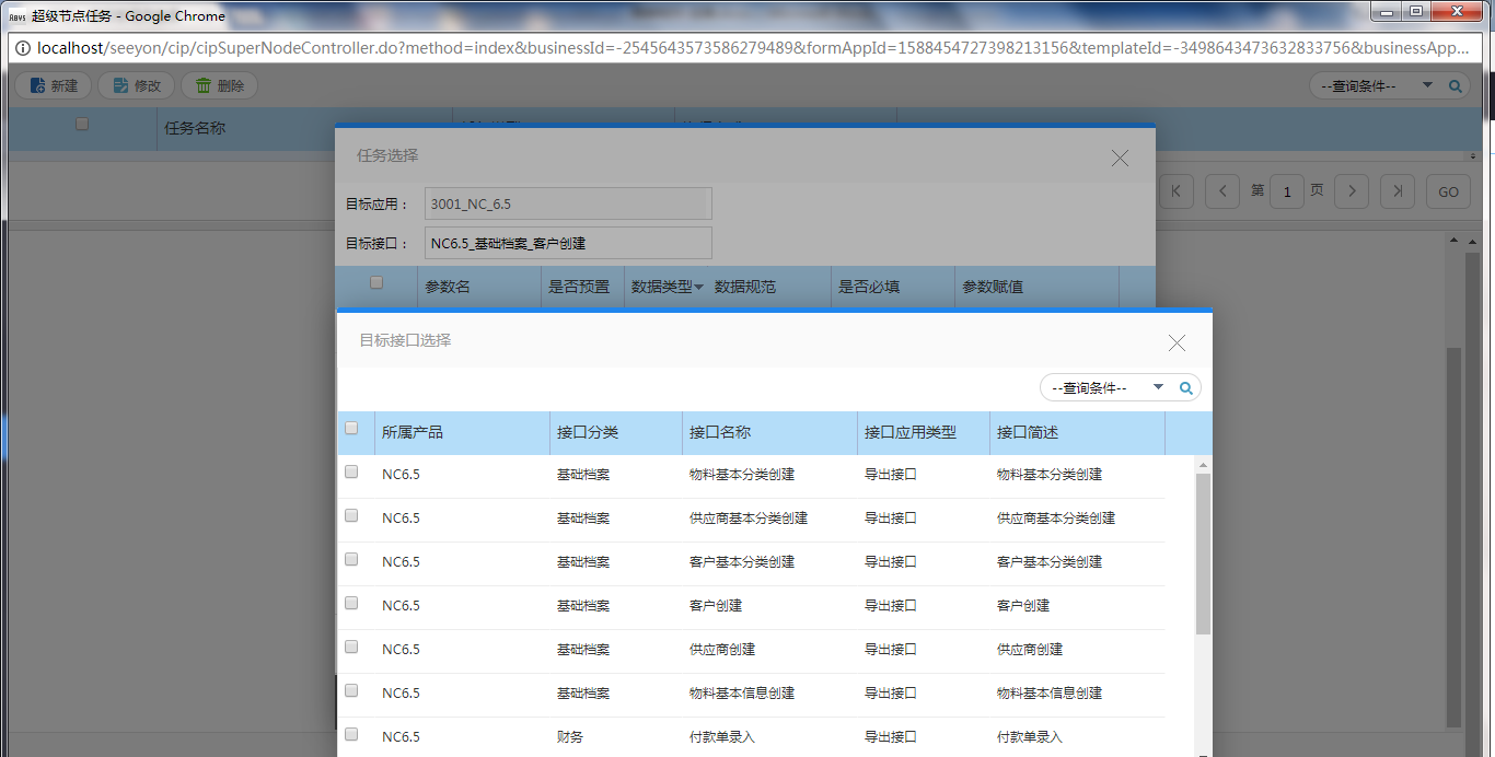 任务:选择客户创建,此处列表为外部接口库中列表显示