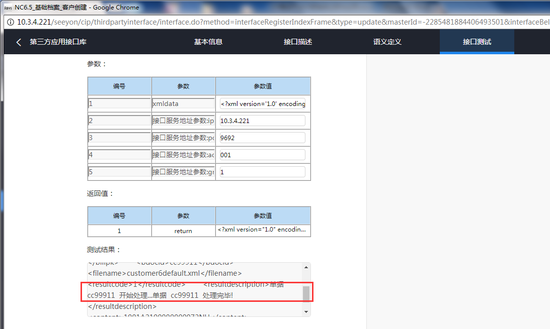 接口测试完成后,说明客户创建这个接口是可用,才能实现在A8中发送创建客户单据到NC的业务场景;