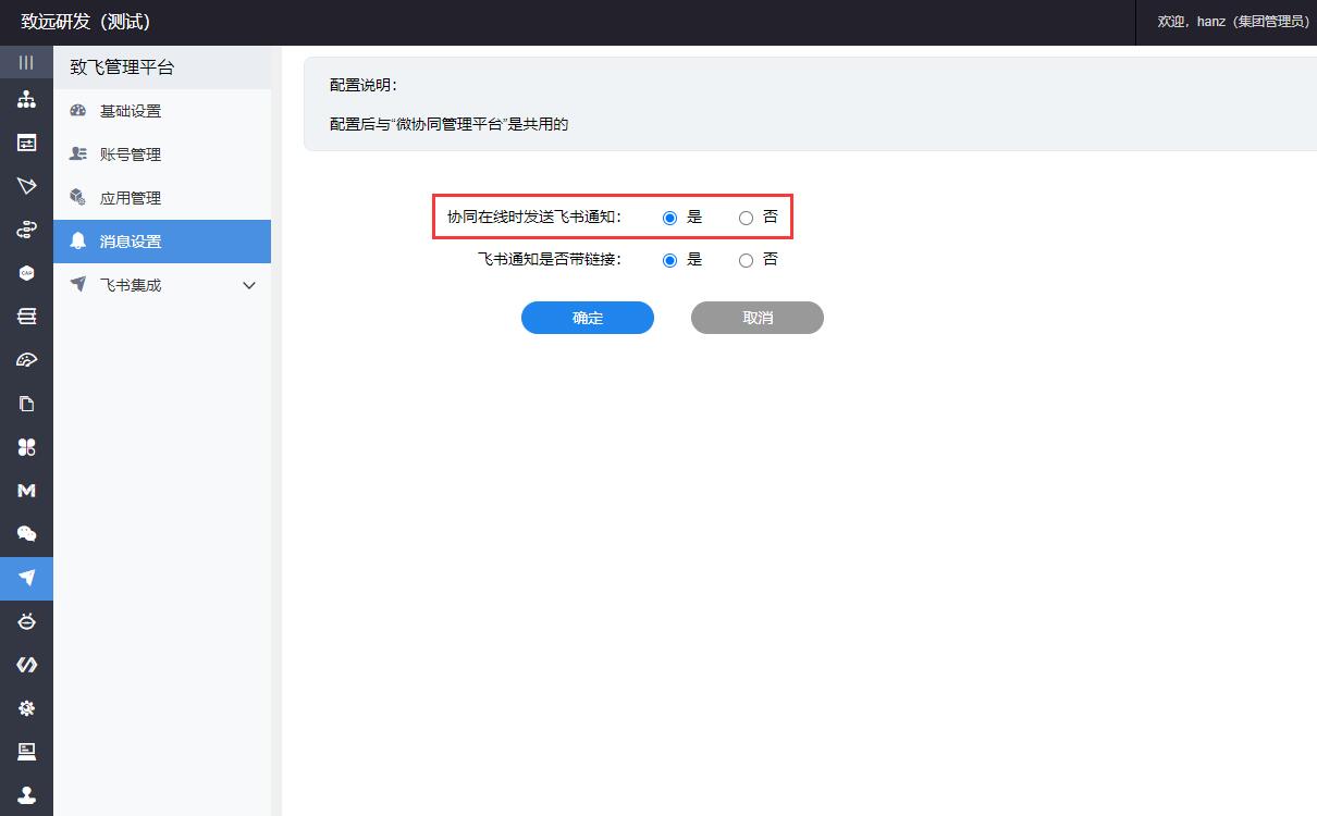 v8.1-飞书消息-PC端在线发送消息 配置见下图