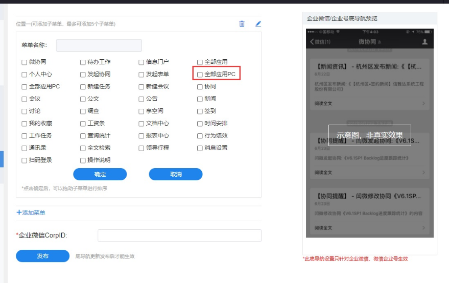 - 8.1SP1版本 PC端企业微信不支持 底导航设置 “全部应用PC” 菜单,如果设置了,可以出代码补丁包来屏蔽该菜单。