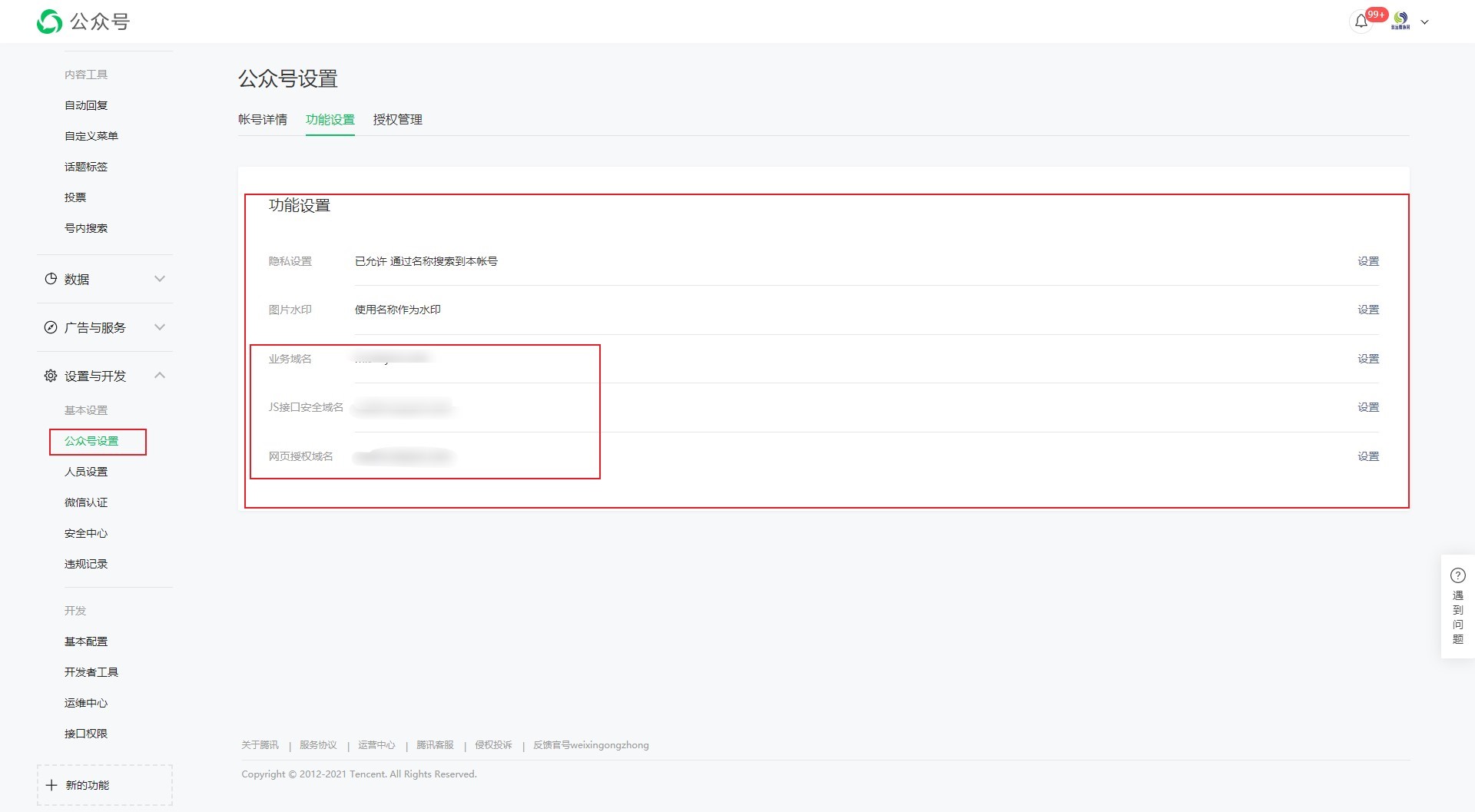 # 1.3.2 微信公众号,配置功能设置以及安全域名