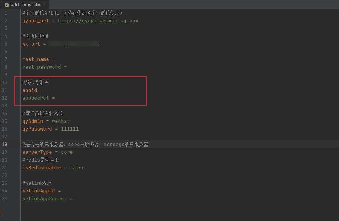 # 1.3.1 微协同安装程序webapps\ROOT\WEB-INF\classes此路径下的sysinfo.properties文件配置微信公众号的appid和appsecret相应信息