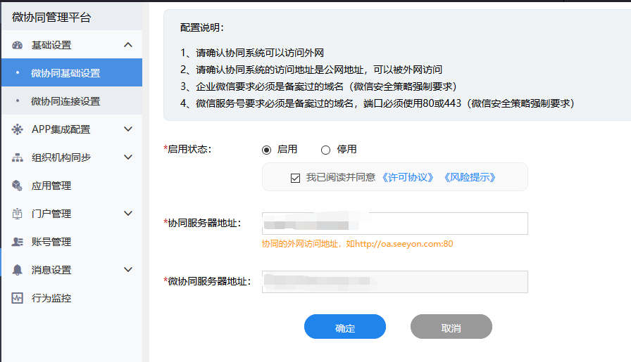 - 协同服务器有外网地址,有经过ICP备案的域名,且只支持https安全协议