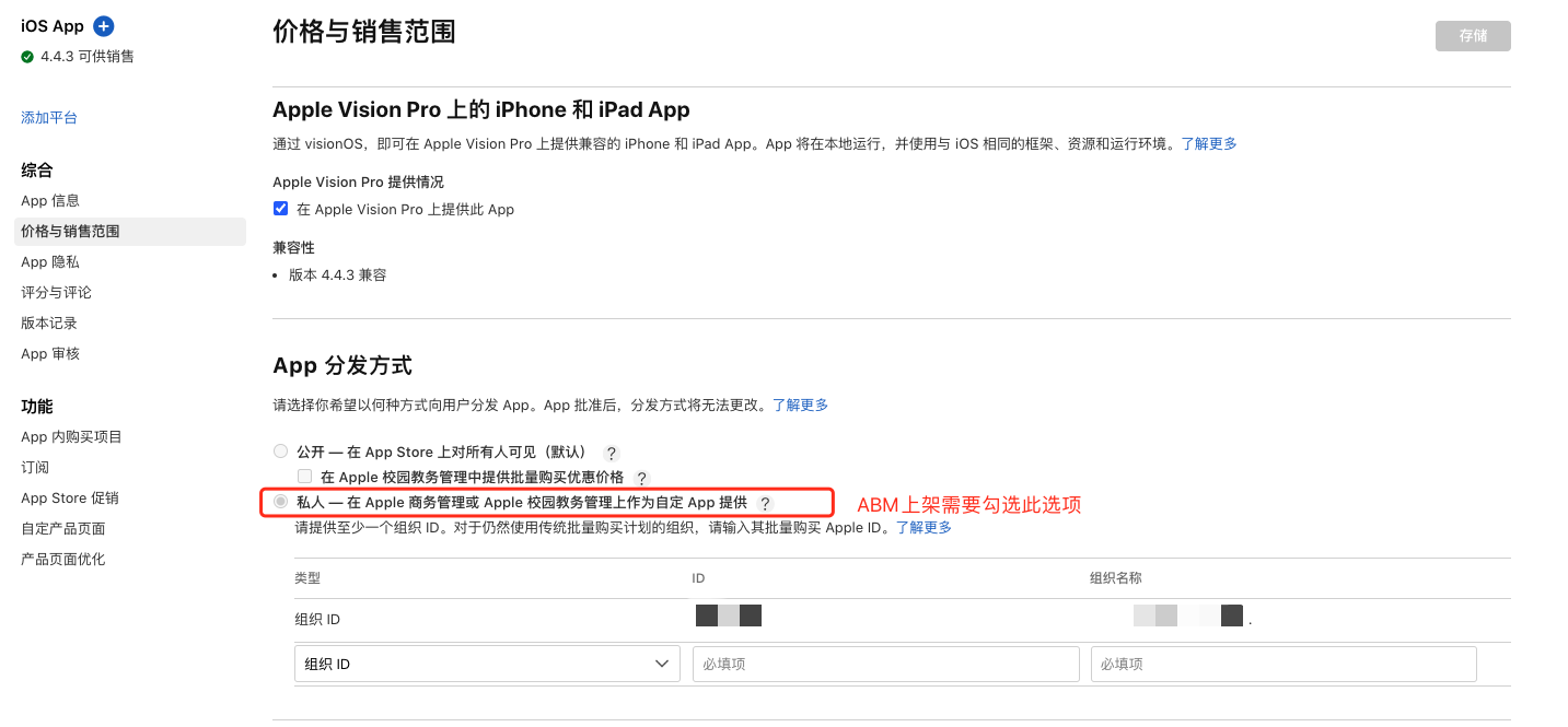其中ABM账号不能用于开发者开发使用,只是用于管理分发APP下载。