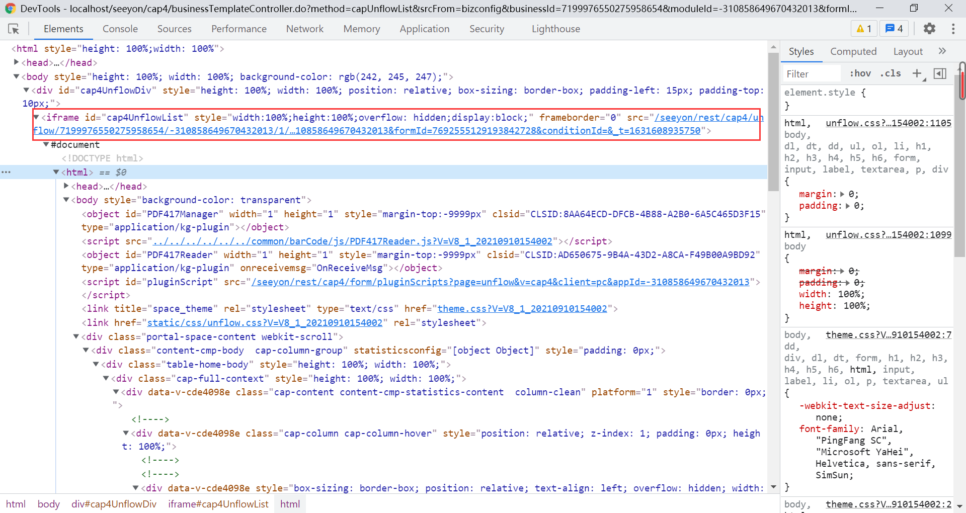 pc_query工程调试: 查看package.json需要启动哪种模板,执行命令,这里我启动npm run serve:0,代表启动query-0模板,启动后进入OA系统=>报表设置=>控制台查询当前iframe=>右键 Open in new tab新标签也打开如图三=>去掉浏览器url 中seeyon到?中间的字符如图三,刷新页面=>本地调试