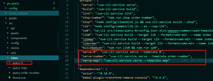 在package.json中添加我们对应的启动命令。("serve:你的模板名称": "vue-cli-service serve --你的模板名称")