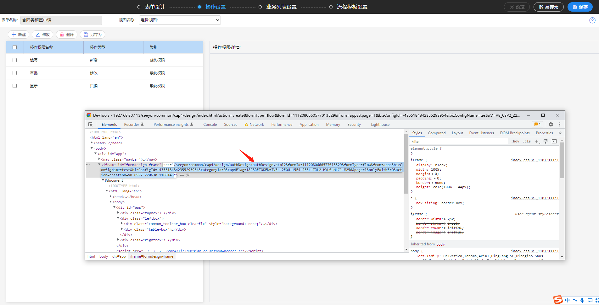 2、在运行态把iframe中的地址copy一下,新开一个浏览器页签,使用localhost/[copy_url]