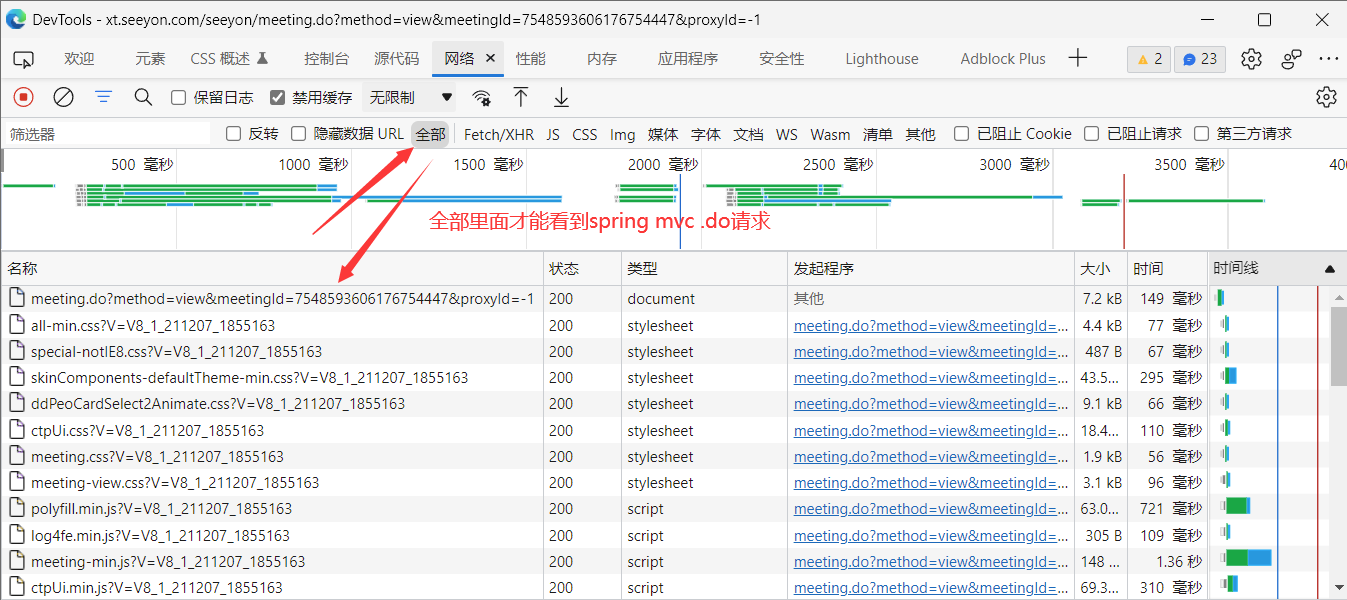 其它情况:如果调试窗口设置为XHR未找到任何请求,则可能不是AJAX、Rest,此时可以切换为ALL(全部)检查下是否是.do之类的请求。