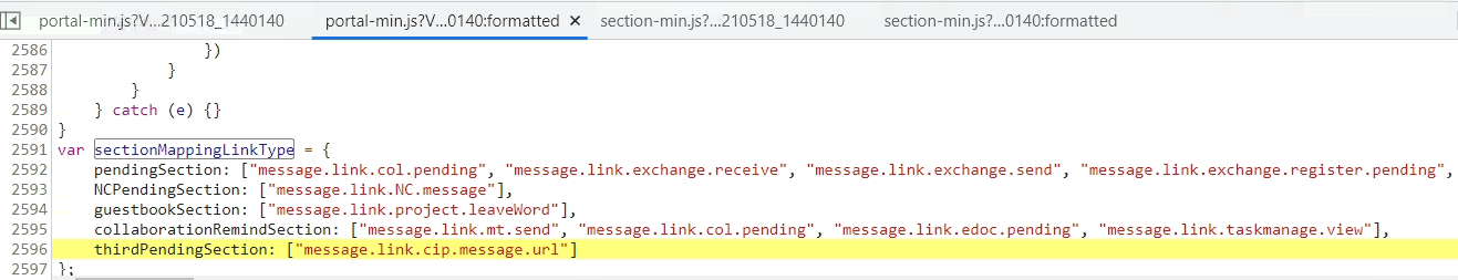压缩后存在于portal-min.js中,可查找sectionMappingLinkType