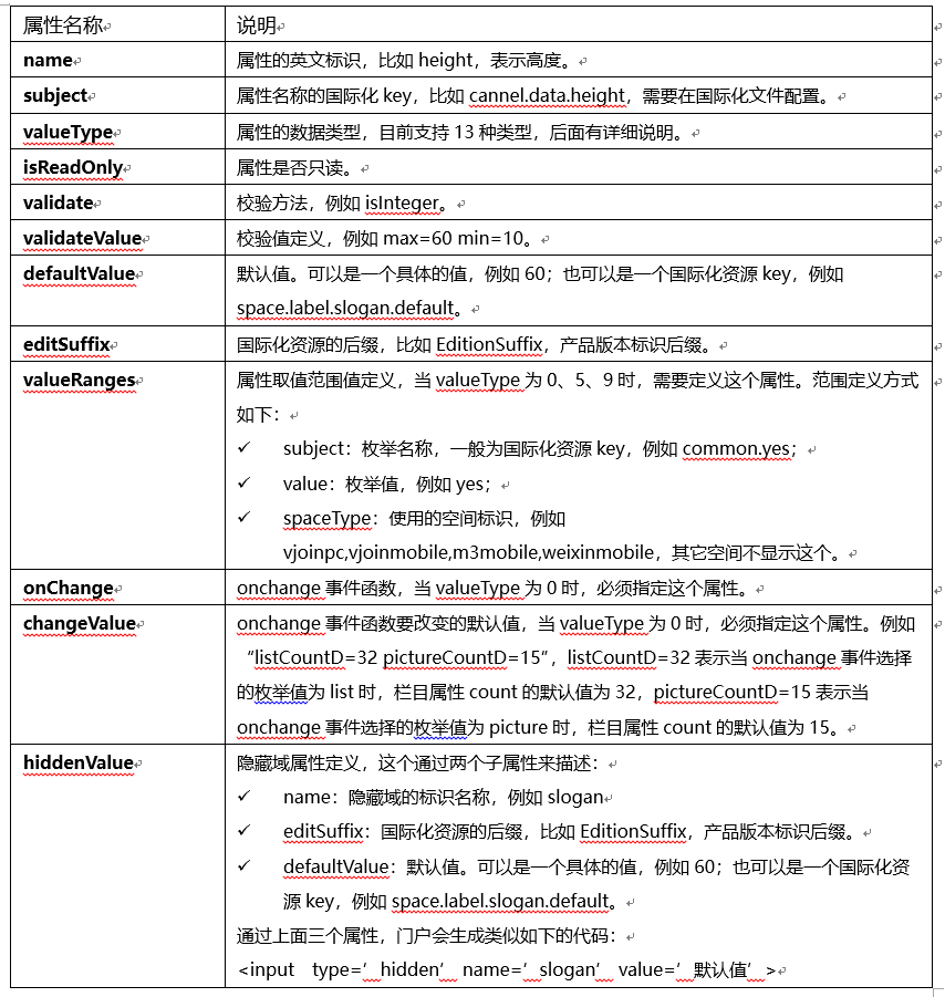 - 一个具体栏目可以配置1到n个上述栏目属性。