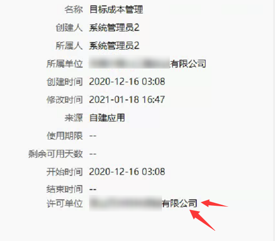 注:已经安装使用的应用包属性中的企业信息还是会显示原来的企业名称,但是不影响使用。如果要修改,建议导出应用包后,再更新一下即可。