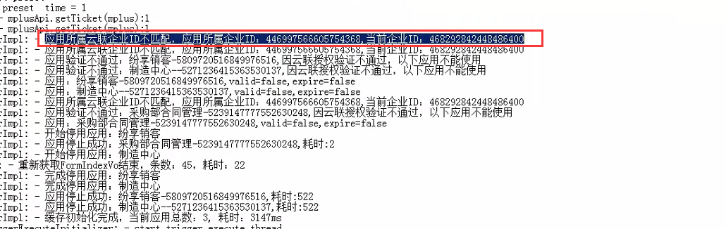 此类问题具体原因比较多,其中云联企业ID不一致的占20%,更新云联证书后企业名称不一致的占10% ,此类问题需要项目经理联系协同云运维人员进行排查处理。