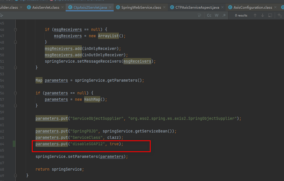 2、在\seeyon\WEB-INF\cfgHome\component\webservice\spring\wso2services.xml每个service中增加参数(本地未验证,不涉及改动代码,现场可以尝试下)。