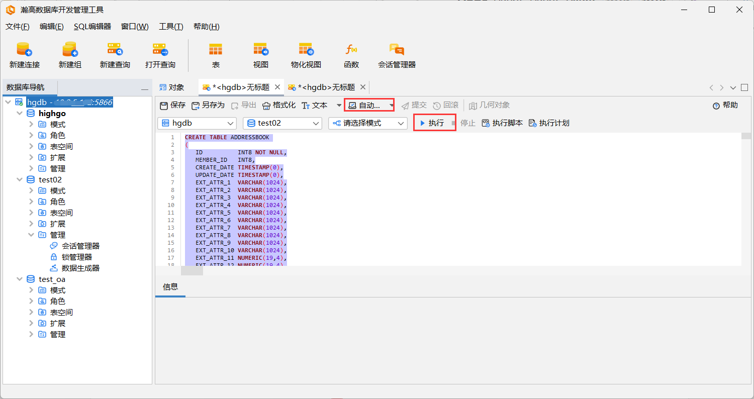 将SQL拷贝到瀚高数据库对应空库下,执行脚本(如果条件允许,也可以联系瀚高数据库厂商协助执行脚本):