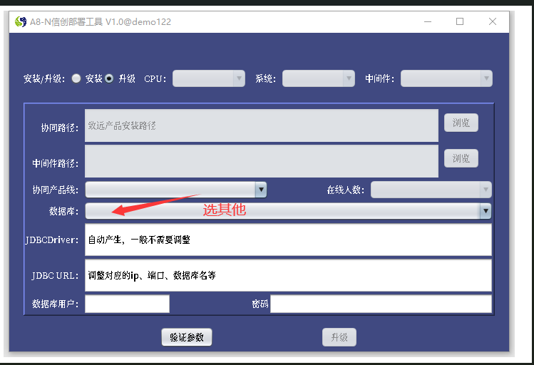 1、参考《致远协同管理软件信创环境部署手册》搭建东方通中间件,唯一不同处为:部署时数据库类型选择"其他":