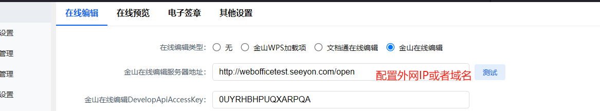 还需要注意:OA服务器必须要能访问配置的weboffice外网IP或域名