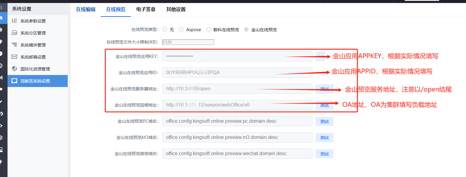 客户访问OA通过外网IP访问,包括:PC端、M3端、微协同等,其中之一。 在线编辑/在线预览 这2个《金山在线编辑服务器地址》配置的外网地址(IP或域名)
