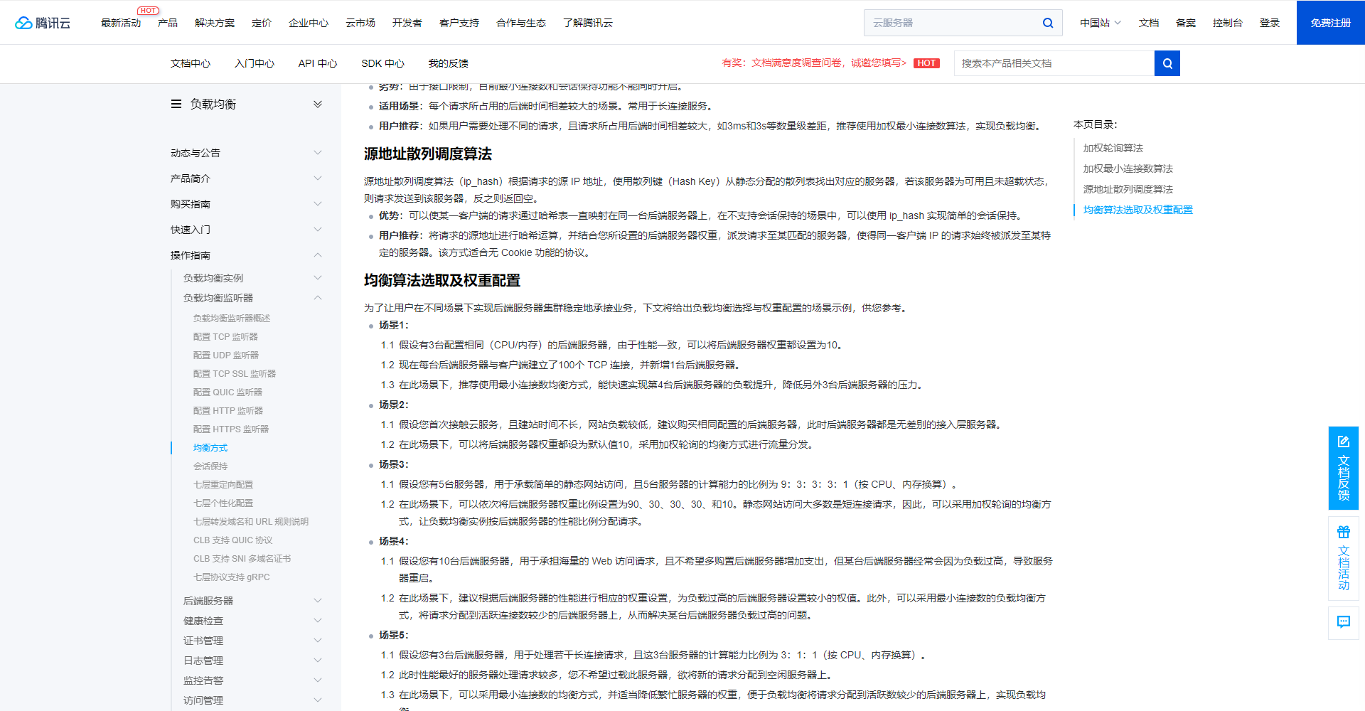 以下列举各大云服务厂商云负载产品配置文档。