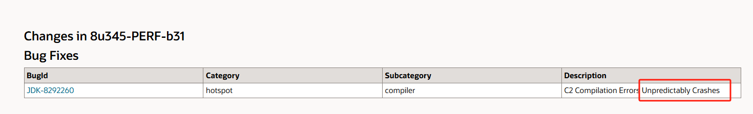 后来,客户自己去Oracle官网查询到高于341版本的JDK有修复JVM C2 Crashes,于是客户更新了JDK版本。