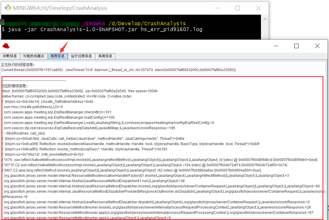 我们可以逐个页签,将内容拷贝给AI,尤其是“线程信息”、“运行过程信息”部分推送给AI,也能得到准确的答案。
