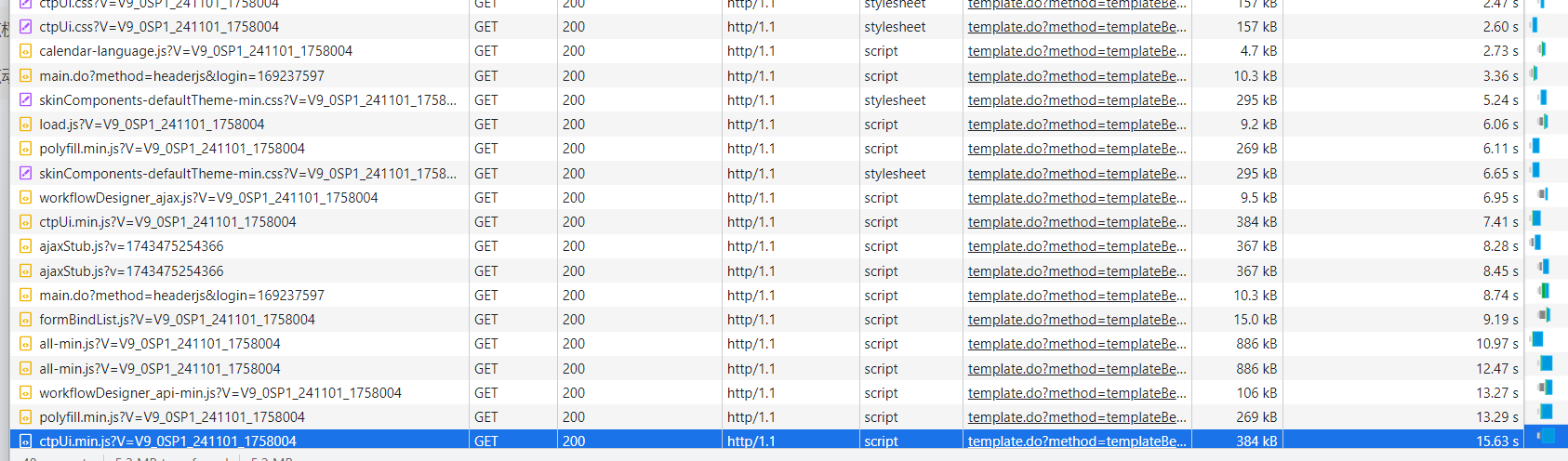 这里可以看到很多js或css文件大小只有几KB到几百KB,但请求耗时在几秒到十几秒之间 对静态资源文件下载是直接由中间件处理,不涉及代码逻辑,因此这部分请求慢大概率都是网络层面的问题,我们可以在服务器本机或同网段验证
